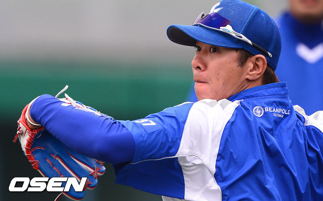 11일 오후 대구구장에서 열린 '2014 한국야쿠르트 세븐 프로야구' 삼성 라이온스와 SK 와이번스의 경기전 삼성 임창용이 펑고 훈련을 하고 있다.