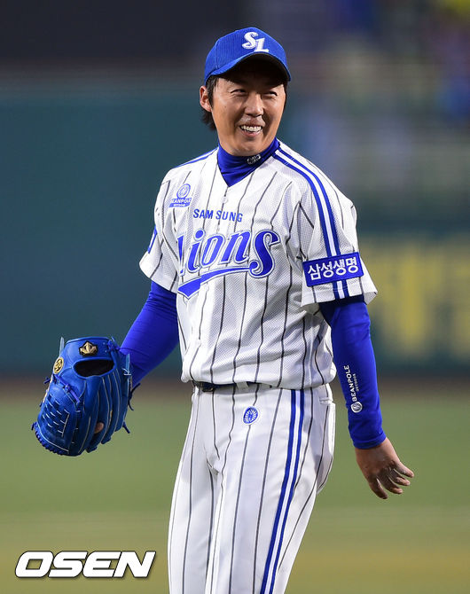 11일 오후 대구구장에서 열린 '2014 한국야쿠르트 세븐 프로야구' 삼성 라이온스와 SK 와이번스의 경기, 1회초 SK 공격을 막은 삼성 선발투수 배영수가 미소 지으며 더그아웃으로 들어가고 있다.