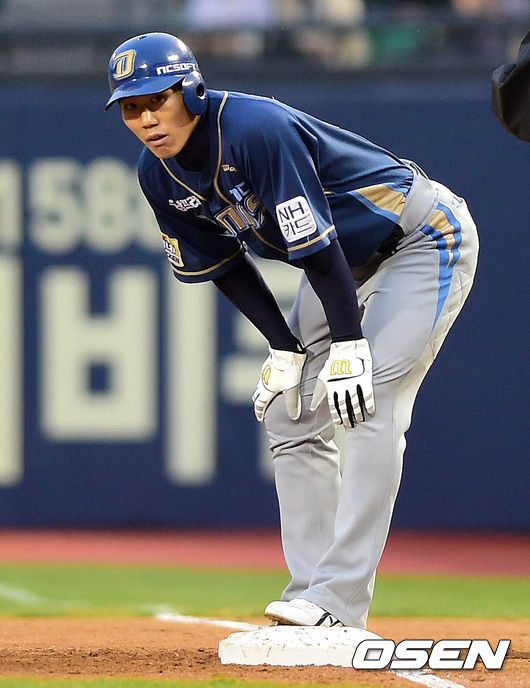 11일 오후 서울 잠실구장에서 열린 '2014 한국야쿠르트 세븐 프로야구' LG 트윈스와 NC 다이노스의 경기 1회초 1사 만루 모창민이 2타점 적시타를 치고 1루 베이스에 서 있다.