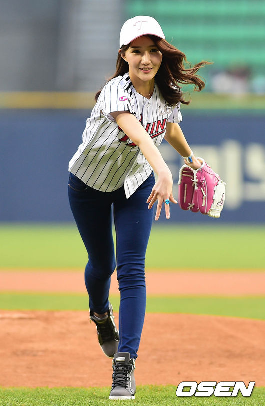 11일 오후 서울 잠실구장에서 열린 '2014 한국야쿠르트 세븐 프로야구' LG 트윈스와 NC 다이노스의 경기 시작전 한수민이 시구를 하고 있다.