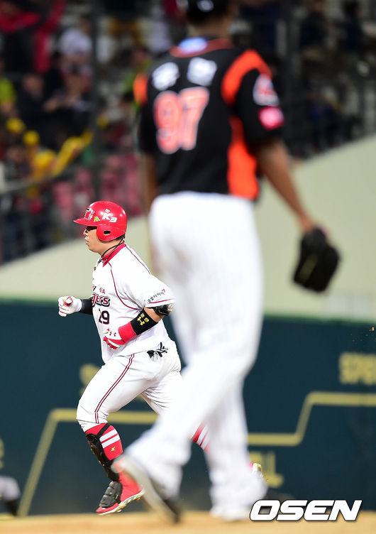 2회말 무사에서 KIA 나지완이 좌월 솔로 홈런을 날리고 그라운드를 돌고 있다.