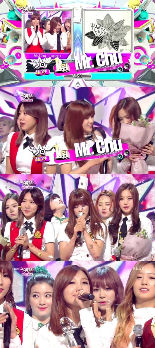 걸그룹 에이핑크가 컴백 1주일만에 '뮤직뱅크' 1위를 차지했다.