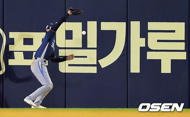 11일 오후 서울 잠실구장에서 열린 '2014 한국야쿠르트 세븐 프로야구' LG 트윈스와 NC 다이노스의 경기 3회말 1사 1루 이진영의 뜬공을 좌익수 김종호가 놓치고 있다.