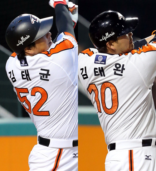 한화는 개막 후 10경기에서 9개의 팀 홈런으로 만만치 않은 화력을 뽐냈다. 그러나 공교롭게도 1~4번 타순에서는 홈런이 하나도 없는 반면 5~9번 타순에서만 9개 홈런이 모두 터졌다. 4번타자 김태균이 고감도 타격에도 홈런을 신고하지 못했고, 또 다른 거포 김태완은 2군에 머물러 있었다. 그랬던 두 선수가 11일 대전 넥센전에서 나란히 마수걸이 홈런포를 신고했다.
