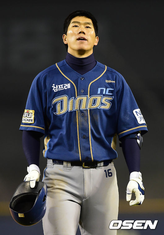 11일 오후 서울 잠실구장에서 열린 '2014 한국야쿠르트 세븐 프로야구' LG 트윈스와 NC 다이노스의 경기 7회초 1사 1,2루 모창민이 우익수 플라이로 물러나자 아쉬워하고 있다.