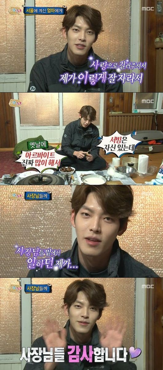 이날 김우빈은 메밀전을 부치며 자신의 어머니이게 요리법을 물었다. 김우빈은 영상으로 답변해준 엄마에게 고마움을 느끼며 난데 없이 영상편지를 시작했다.