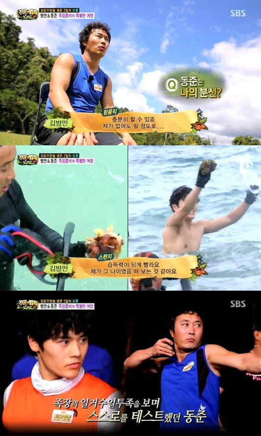 동준은 "병만이 형 같은 사람은 처음 봤다"며 능력자 김병만에게 감탄했다.