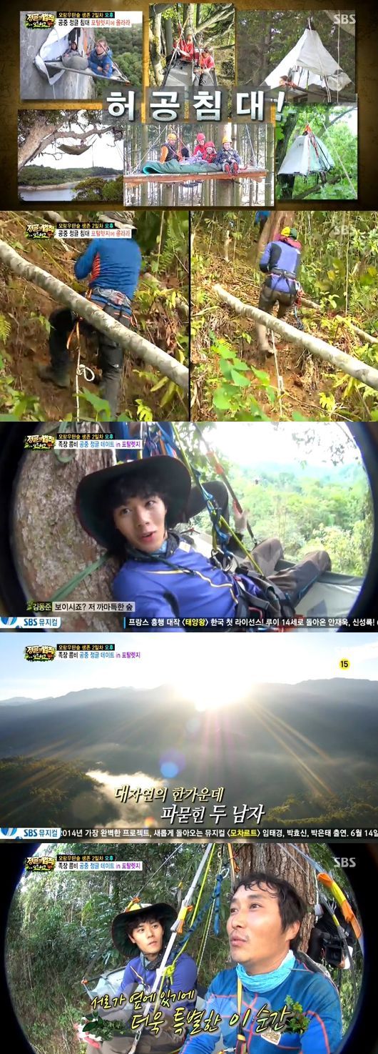 '정글의 법칙'의 족장콤비 김병만과 동준이 허공침대 오르기에 성공했다.