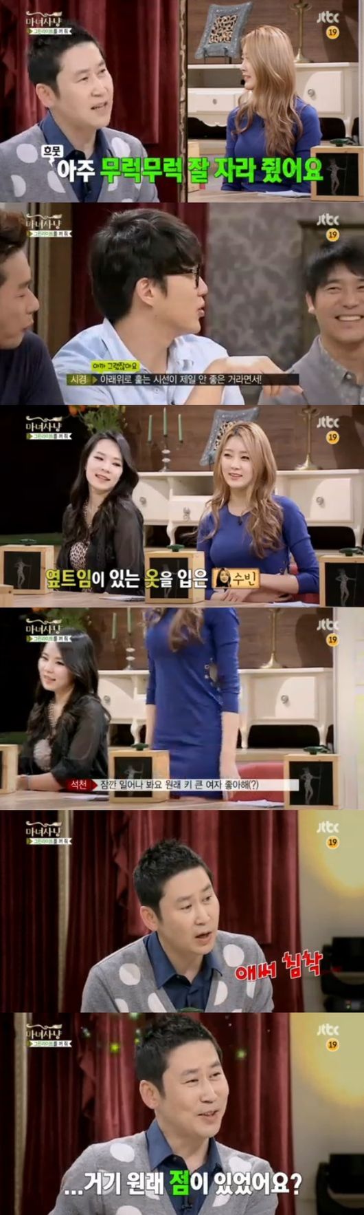 이날 수빈이 옆트임이 있는 원피스를 입고 녹화에 참여했던 것. 신동엽은 당황스러워 하더니 귀까지 빨개졌다.