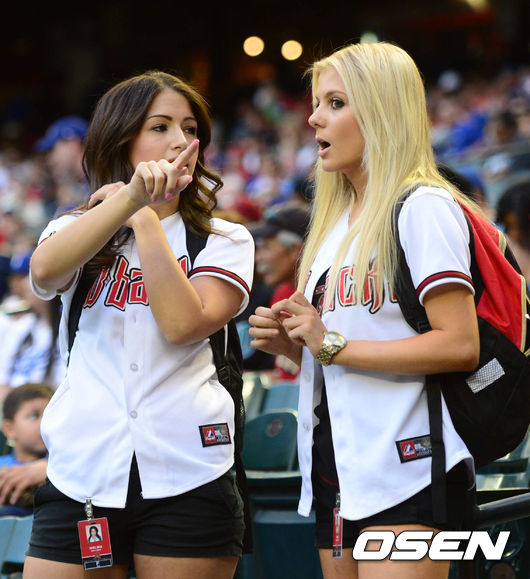 12일(이하 한국시간) 미국 애리조나주 피닉스 체이스필드에서 열린 '2014 메이저리그' LA 다저스와 애리조나 다이아몬드백스의 경기를 찾은 미녀 팬이 경기장을 바라보고 있다.