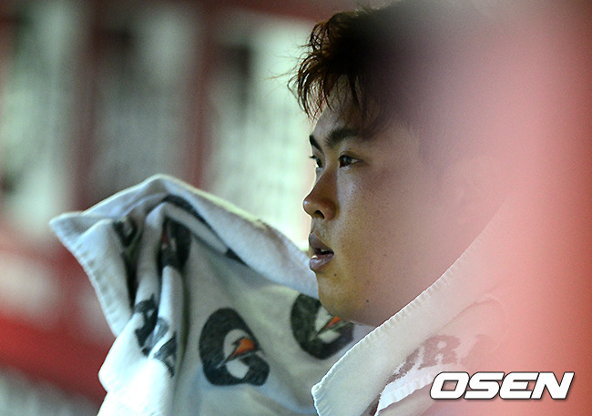 다저스 류현진이 7회말 수비를 마치고 더그아웃에서 땀을 닦고 있다. / jpnews@osen.co.kr