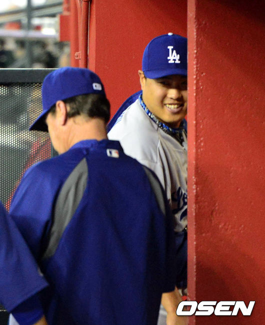 7회말 수비를 마친 류현진이 밝은 표정으로 더그아웃을 빠져 나가고 있다./jpnews@osen.co.kr