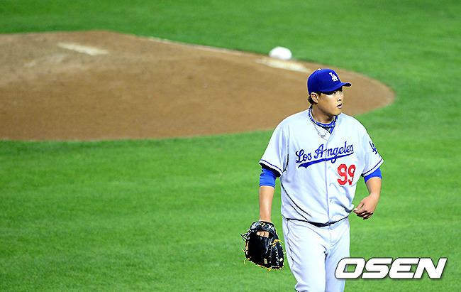 2회말 수비를 마친 다저스 류현진이 더그아웃으로 향하고 있다./jpnews@osen.co.kr