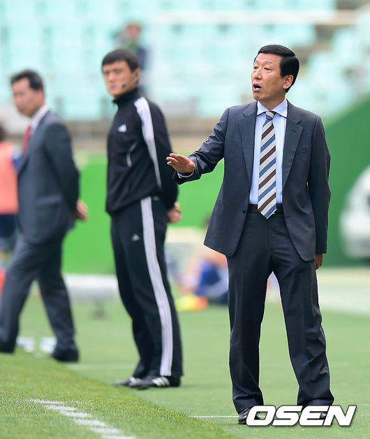 전반 최강희 감독이 선수들에게 작전을 지시하고 있다.