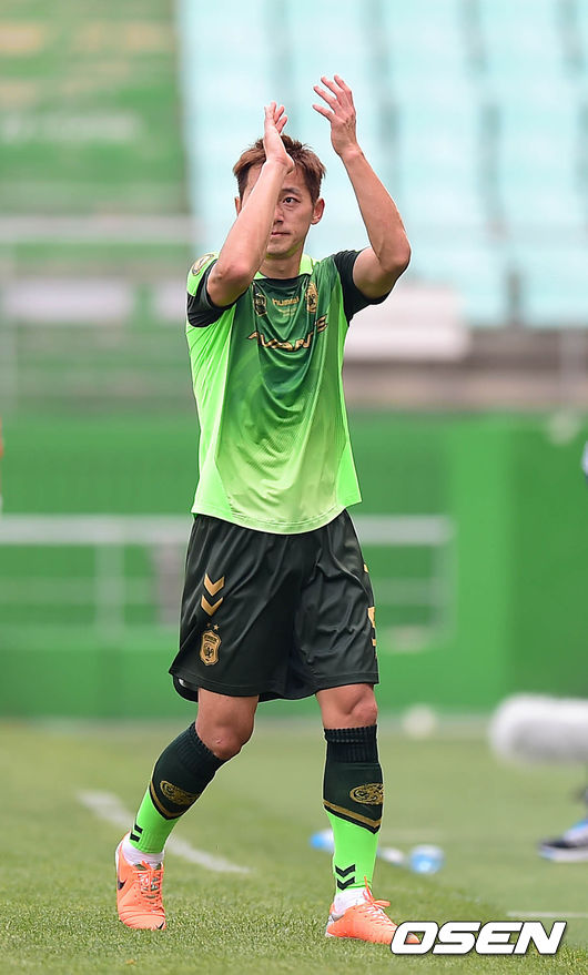 후반 전북 김남일이 교체되며 관중석을 향해 인사를 하고 있다.