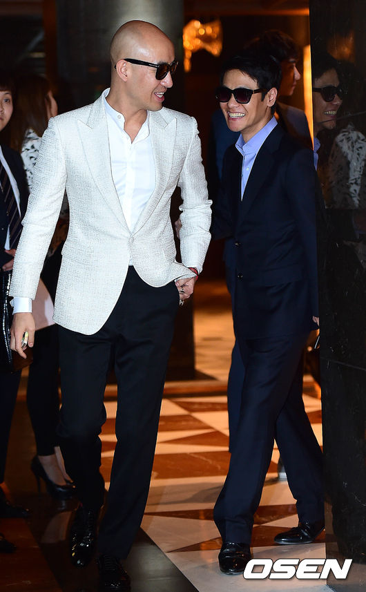 배우 홍경인과 홍석천이 12일 오후 서울 삼성동 그랜드 인터컨티넨탈 서울 파르나스 그랜드볼룸에서 열리는 '박정철 결혼식'에 참석하고 있다.
