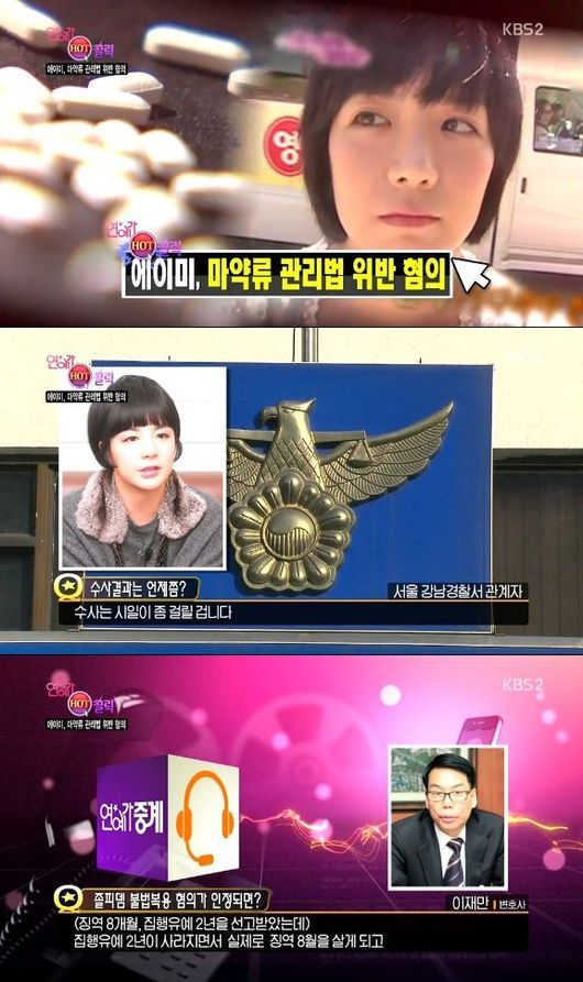 12일 오후 9시 15분 방송된 KBS 2TV '연예가중계'에는 졸피뎀 복용으로 입건된 소식이 담겼다.