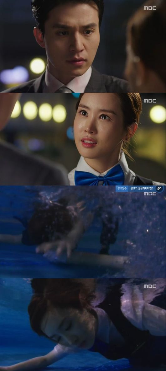 '호텔킹' 이다해가 알 수 없는 손에 의해 수영장에서 물을 먹고 기절했다.