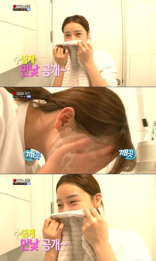 이날 천이슬은 1일차 도전을 마치고 언니들을 따라 세안에 나섰다. 그는 화장을 말끔히 지운 모습으로 수줍은 듯 웃어보였다.