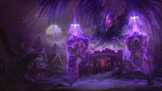 까마귀 군주가 지배하는 저주의 골짜기는 임의의 장소에서 하나씩 나타나는 공물 3개를 먼저 모으는 팀이 상대 팀에 저주를 걸 수 있다는 것이 특징이다. 공물이 등장하는 위치가 정해져 있지 않기 때문에 각 팀의 영웅들은 전장이 시작되면 2개의 감시탑 및 3개의 공격로에서 힘 싸움을 벌이는 한편, 공물이 등장할 타이밍을 재며 치열한 신경전을 벌이게 된다.