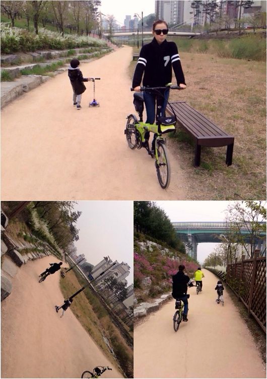 손태영은 지난 12일 자신의 페이스북에 아들 룩희 군과 한 공원에서 자전거를 타고 있는 모습이 담긴 사진을 게재했다.