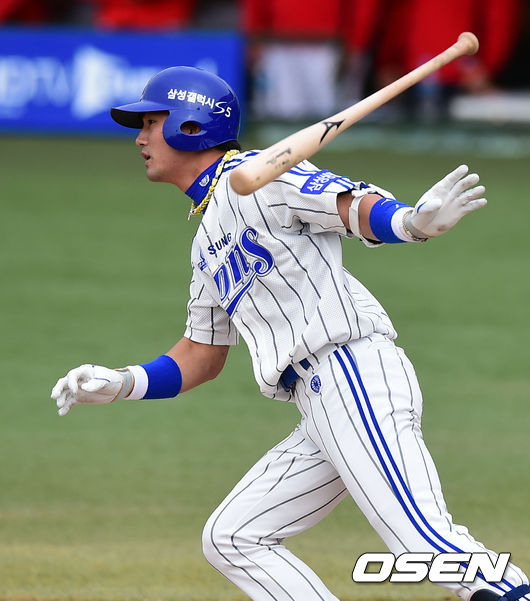 12일 오후 대구구장에서 열린 '2014 한국야쿠르트 세븐 프로야구' 삼성 라이온스와 SK 와이번스의 경기,1회말 2사 만루 삼성 김상수가 2타점 적시타를 날리고 있다.