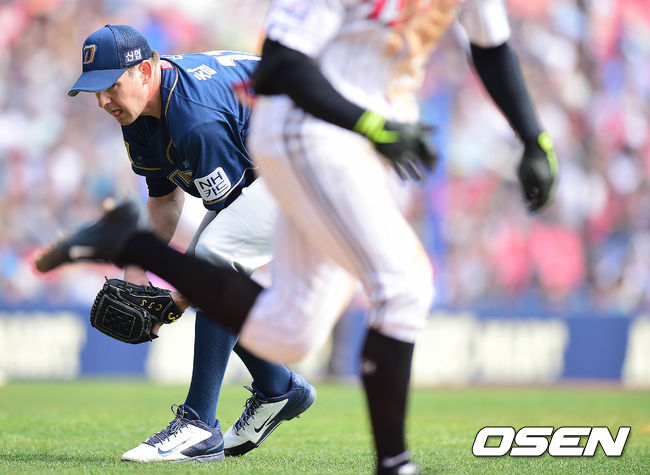 2회말 LG 공격 무사 1루 상황 오지환의 투수 앞 땅볼 때 NC 선발 찰리가 타구를 침착하게 처리하고 있다. 타자주자 아웃.