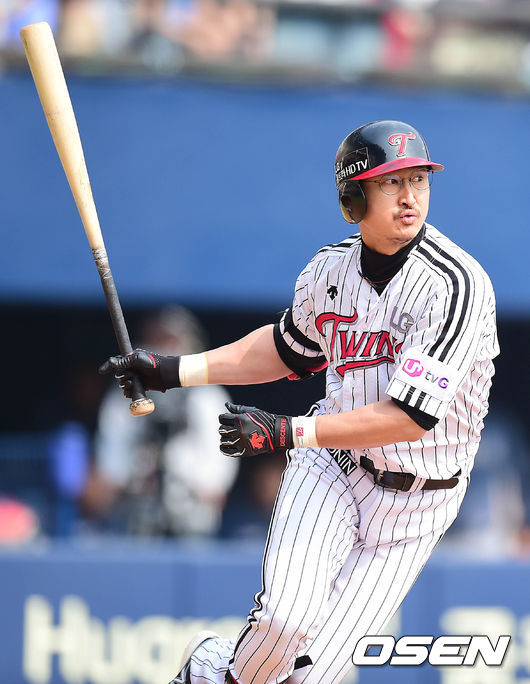 3회말 LG 공격 무사 1루 상황 박용택이 우전안타를 날리고 있다.