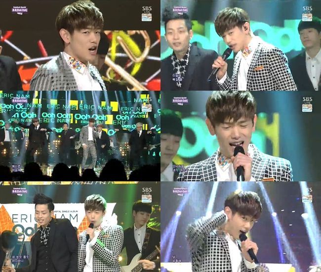 에릭남은 13일 오후 방송된 SBS '인기가요'에서 타이틀곡 '우 우(Ooh Ooh)'를 열창하며 화려한 무대를 꾸몄다.