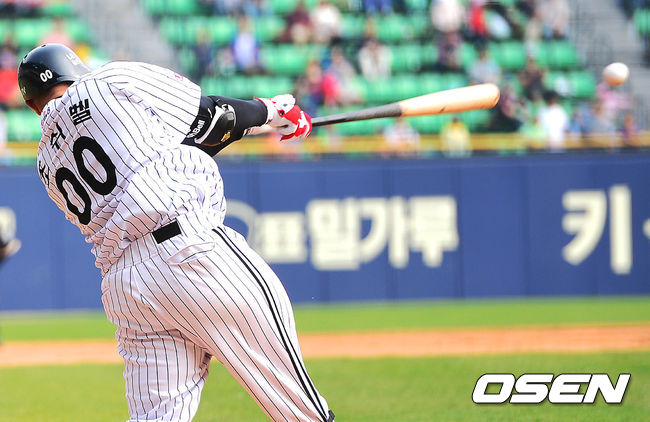 5회말 LG 공격 1사 1, 3루 상황 조쉬벨이 역전 1타점 적시 좌전안타를 날리고 있다.