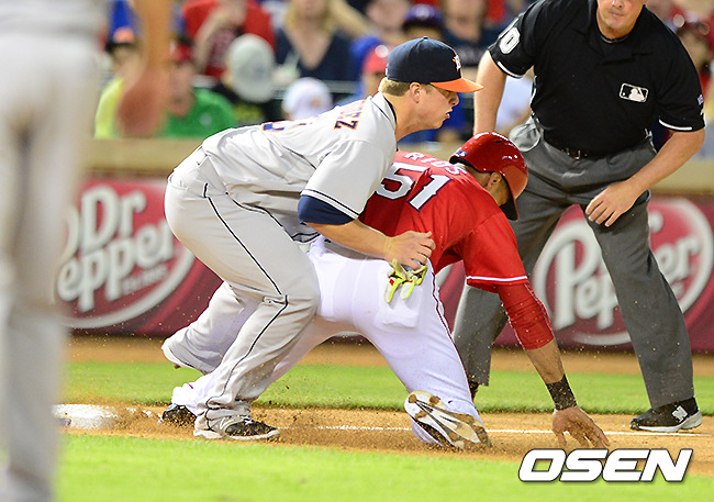 8회말 무사 2루에서 텍사스 리오스가 3루 도루에 실패하고 있다. /jpnews@osen.co.kr
