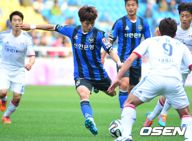 13일 오후 인천축구전용경기장에서 열린 '현대오일뱅크 K리그 클래식 2014' 인천 유나이티드와 수원 블루윙즈의 경기 전반 인천 문상윤이 슈팅을 때리고 있다.