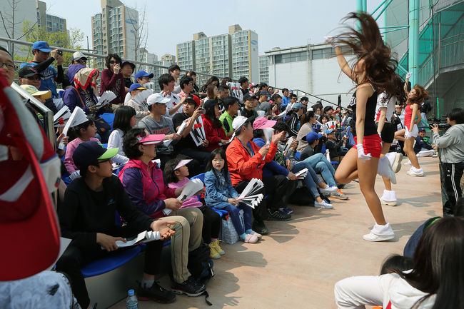 kt의 한 관계자는 “홈 개막전 성격이었던 지난 8일 SK 2군과의 경기 때 이후 가장 많은 팬들이 경기장을 찾아주셨다”라며 흐뭇한 미소를 지었다. 이에 kt도 팬 서비스를 했다. 이날 처음으로 응원단을 꾸려 1루에서 응원전을 주도했다. 정식 응원단장에 치어리더, 그리고 앰프까지 동원했다. 응원단이 응원을 주도하자 저절로 흥도 났다. kt 선수들의 안타, 탈삼진, 호수비 하나하나마다 뜨거운 박수 소리가 터져 나왔다.