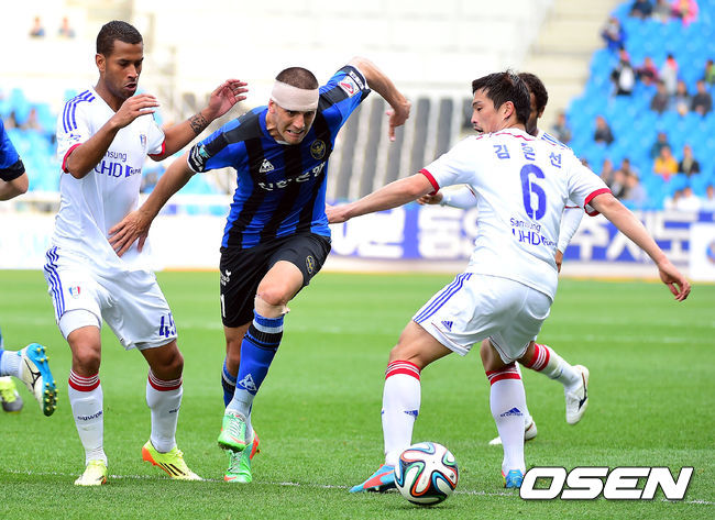 13일 오후 인천축구전용경기장에서 열린 '현대오일뱅크 K리그 클래식 2014' 인천 유나이티드와 수원 블루윙즈의 경기 전반 인천 니콜리치가 드리블 돌파를 시도하고 있다.