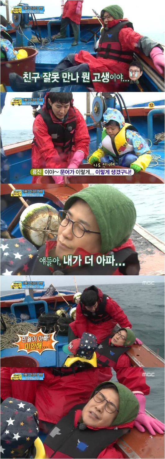 문어 낚시에 신이 난 것은 임찬형도 마찬가지였다. 고난 여행을 원했던 류진과 임찬형은 새로운 경험에 흥이 넘쳤고, 억지로 끌려온 김성주는 울상이었다. 해맑은 류진 부자의 모습을 보며 뱃멀미로 고생을 하는 김성주의 대비된 모습은 시청자들을 웃게 했다.