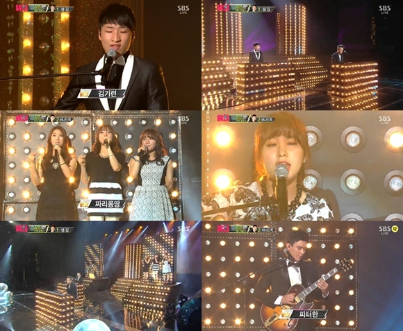 먼저 박진영은 김기련과 함께 '난 여자가 있는데'를 키보드로 연주했고, 김기련이 이에 맞춰 노래를 불렀다. 이어 짜리몽땅과 권진아가 등장해 '너 뿐이야'를 열창했다.