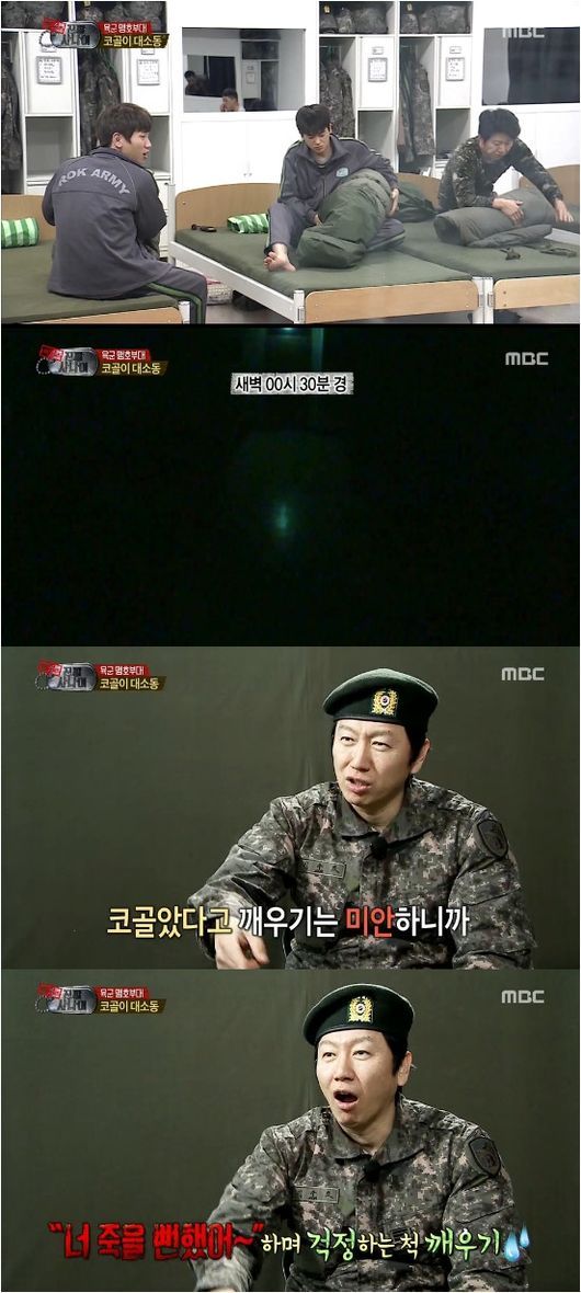 김수로는 13일 방송된 MBC 예능프로그램 ‘일밤-진짜 사나이’에서 샘 해밍턴, 헨리, 서경석, 박건형의 코골이에 잠을 이루지 못했다. 결국 김수로는 참다 참다가 자정을 넘긴 시각에 “일어났다가 다시 자자”라고 제안했다.