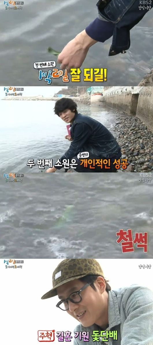 정준영은 '1박2일'의 성공, 개인적인 성공, 김주혁의 결혼 성공을 빌려고 했다.