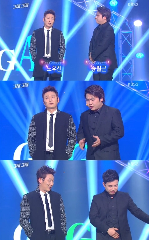 13일 오후 방송된 KBS 2TV '개그콘서트'(이하 '개콘')의 코너 ‘그래 그래’에는 노우진, 송필근, 이상구, 김정훈, 김병선 등이 출연했다.