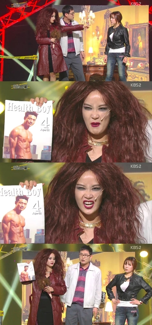 이후 김지민은 용의자들 중 범인이 있을 것 같다는 박영진의 발언에 “최근호예요”라고 답해 눈길을 끌었다. 그러나 이내 “이 잡지 최근호예요. 4월호. 김기리. 내가 먼저 꼬실걸. 언제까지 사귀나 보자”라고 덧붙여 객석을 웃음바다로 만들었다.