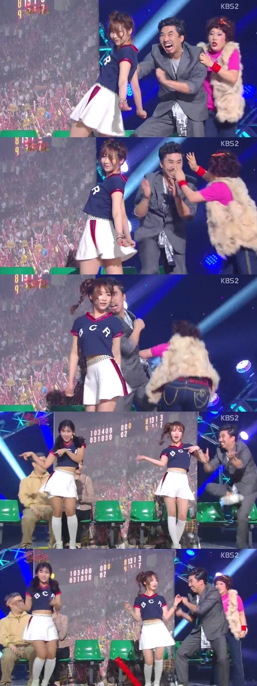안소미와 홍예슬은 13일 오후 방송된 KBS 2TV '개그콘서트'(이하 '개콘')의 코너 '끝사랑'에 깜짝 출연, 화려한 치어리딩을 선보였다.