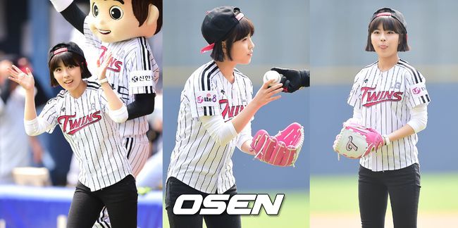 이날 도희는 짧은 단발머리에 캡모자를 거꾸로 쓰고, 검은 스키니 진에 분홍색 글러브를 매치해 눈길을 끌었다. 도희의 깜찍한 시구에 LG선수단들도 눈을 떼지 못했다.