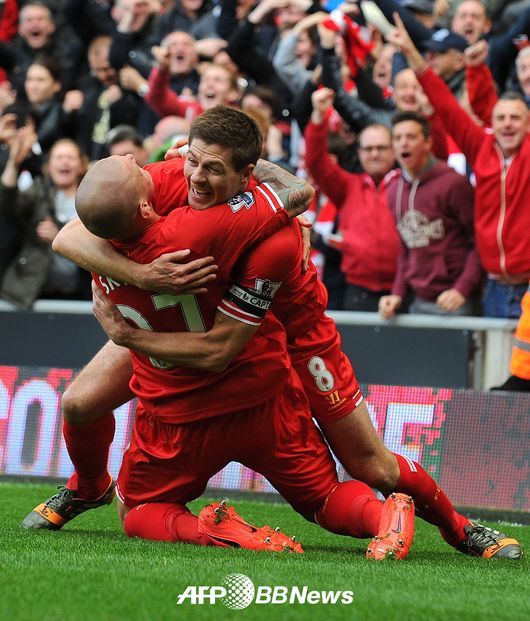 브렌단 로저스 감독이 지휘하는 리버풀은 영국 리버풀에 위치한 안필드서 열린 2013-2014 프리미어리그 34라운드 맨시티와 홈경기서 3-2로 승리를 거뒀다. 최근 10연승 및 15경기 연속 무패(13승 2무)를 기록한 리버풀은 24승 5무 5패(승점 77)가 돼 선두 자리를 지켰다. 맨시티는 22승 4무 6패(승점 70)로 3위에 머물렀다.