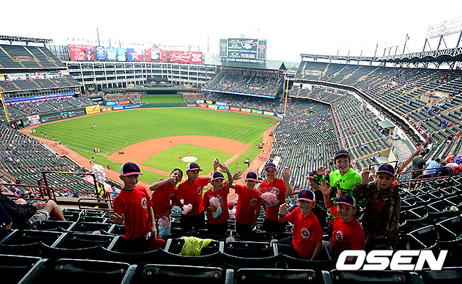 경기에 앞서 텍사스 어린이 팬이 취재진에 손을 흔들며 반가워하고 있다./jpnews@osen.co.kr