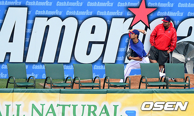 경기에 앞서 텍사스 다르빗슈가 불펜피칭을 하고 있다. /jpnews@osen.co.kr