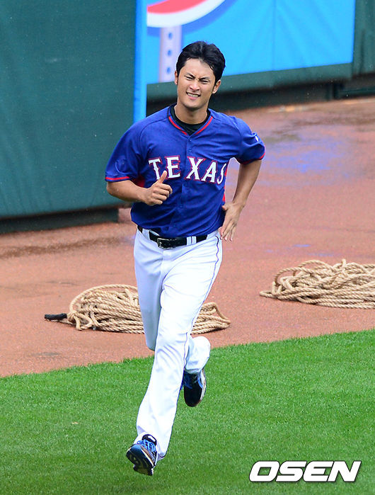경기에 앞서 텍사스 다르빗슈가 불펜피칭을 마치고 외야에서 러닝을 하고 있다. /jpnews@osen.co.kr
