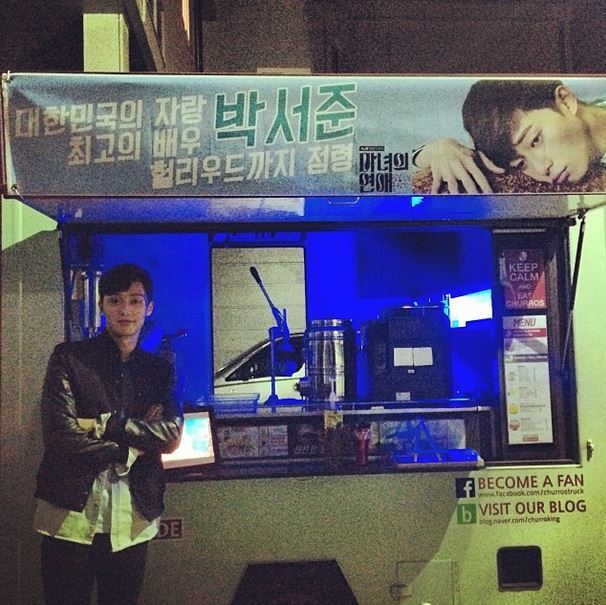 공개된 사진 속에는 박서준이 간식차 앞에서 팔짱을 낀 채 미소를 짓고 있는 모습이 담겨있다. 특히 간식차에 걸려있는 '대한민국의 자랑, 최고의 배우, 할리우드까지 점령 박서준'이라는 현수막 문구가 인상적이다.