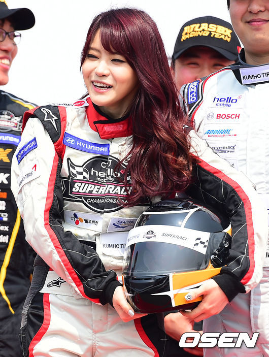 14일 오전 서울 잠실 주경기장 주차장일대에서 진행된 '2014 CJ 헬로모바일 슈퍼레이스 챔피언십' 미디어데이에서 명예드라이버로 위촉된 서유리가 미소짓고 있다.