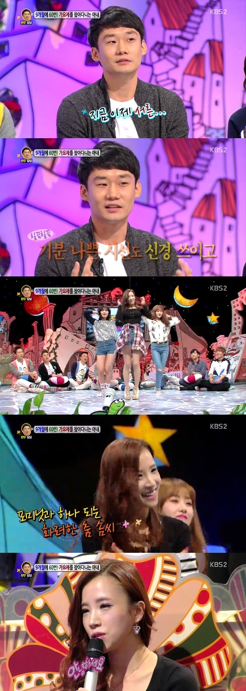 14일 오후 11시 10분에 방송된 KBS2 '대국민 토크쇼 안녕하세요'에는 전국 가요제를 누비는 아내 때문에 고민인 남편의 사연이 전파를 탔다.