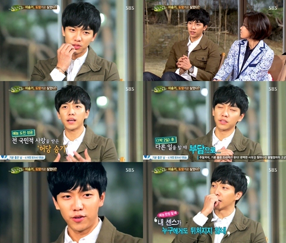 이승기는 14일 오후 방송된 SBS 토크쇼 '힐링캠프, 기쁘지 아니한가'에 출연해 SBS '강심장'을 진행하며 힘들었던 일화를 공개했다.